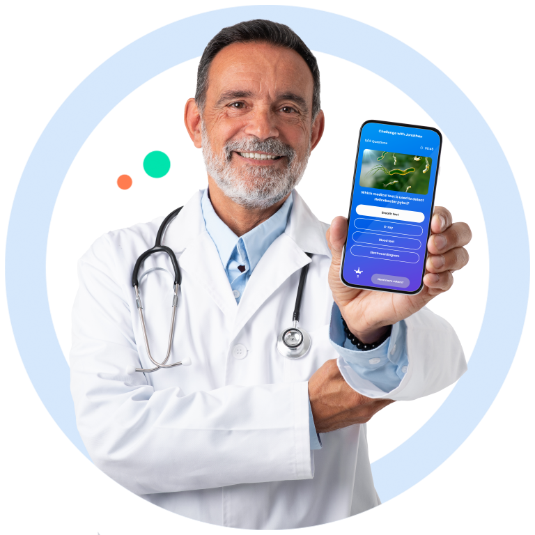 With thousands of interactive gastroenterology questions based on scientific literature and reviewed by experts, the app combines the best of a study bank with the excitement of friendly challenges. Learning gastroenterology by playing shifts from passive reading to active, motivating learning, keeping users engaged at every step.